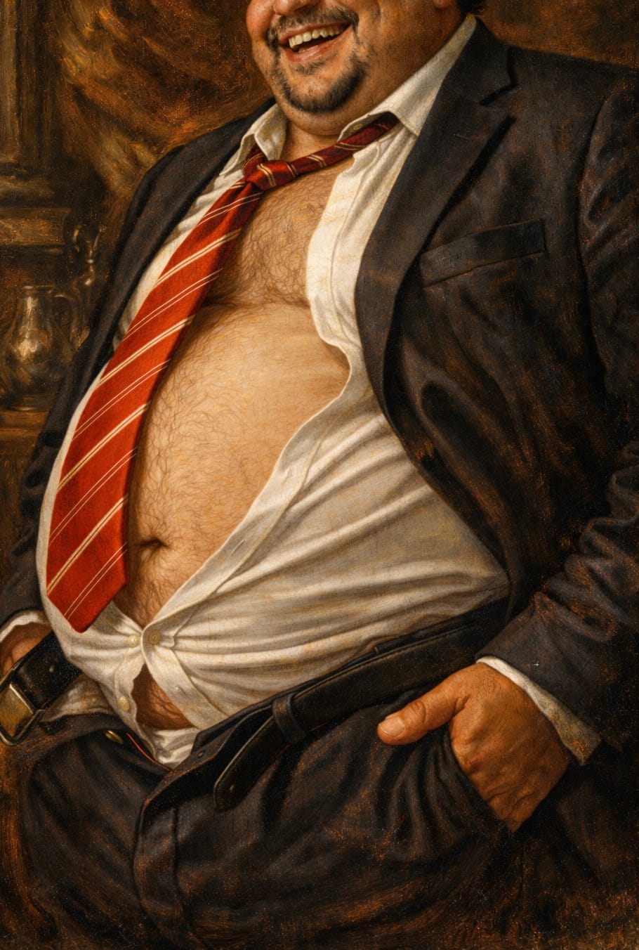 I shook his hand, and immediately cringed as I was nearly crushed by his grip. He was a large man with tan skin, short gray hair, and gray stubble lining his chin. He was dressed in a suit, his big belly hanging over his belt. He continued grinning at me, pulling me closer until his belly was pressed against me.